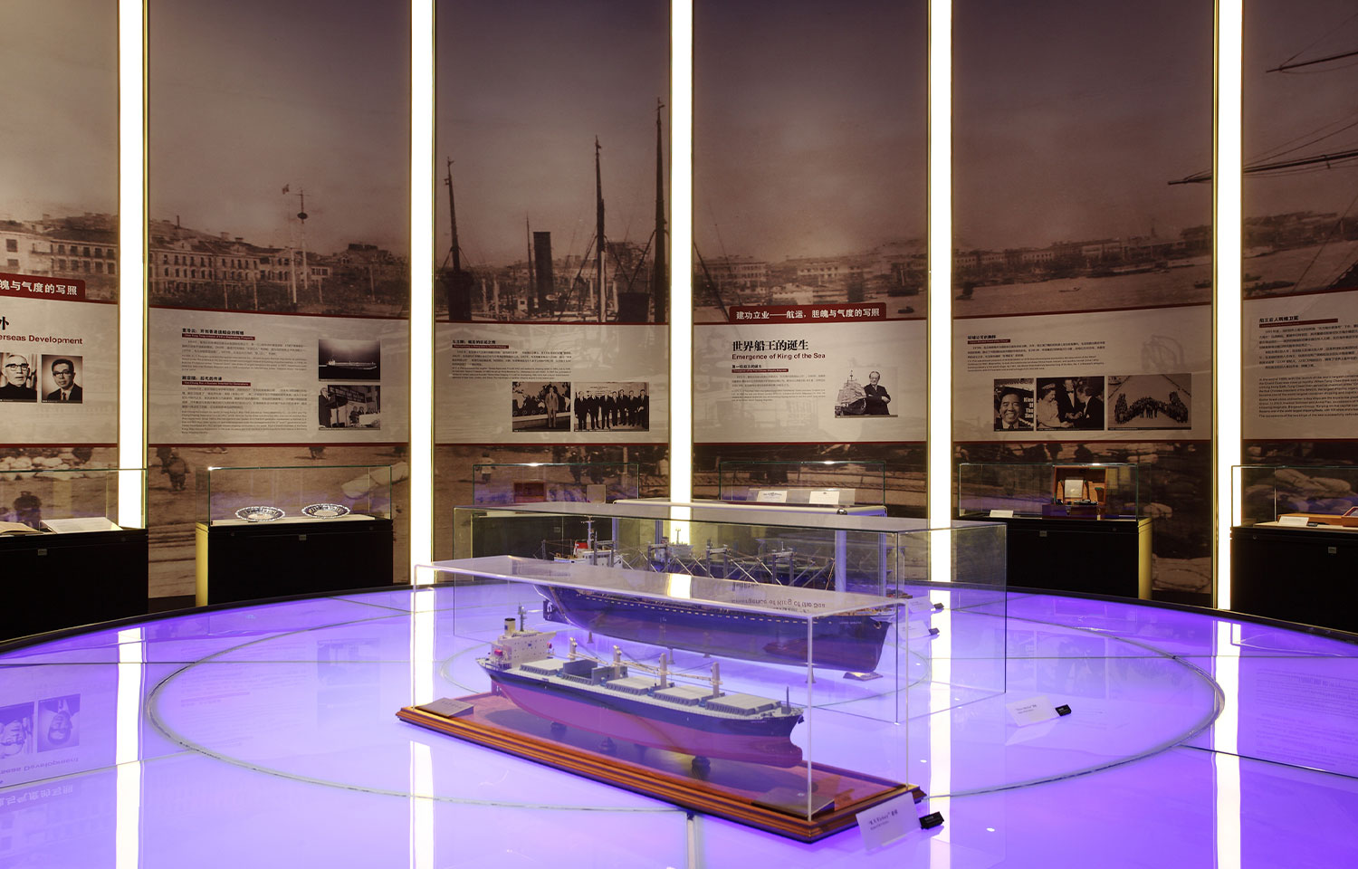 该馆从 “航运,胆魂与气度的写照”、 “金融,为中国开创一个时代”、 “商贸,‘洋场’的弄潮儿”、“实业,怀着强国的梦想”四个层面展示了宁波帮在航运、金融、商贸、实业等领域纵横驰骋,并成功转型,从而造就了天下闻达的宁波帮的历史。