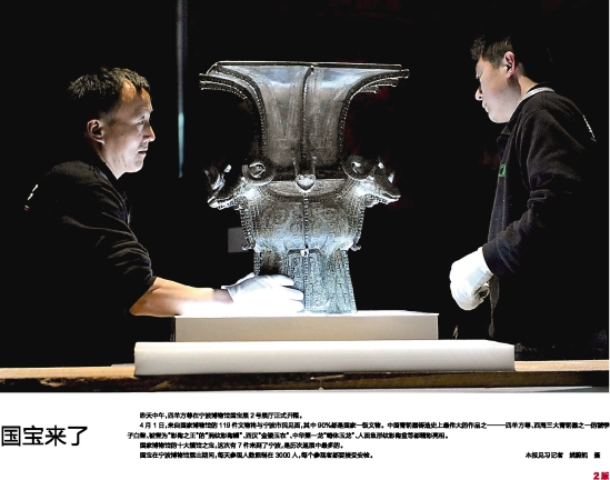 昨天中午,四羊方尊在宁波博物馆国宝展2号展厅正式开箱。 4月1日,来自国家博物馆的119件文物将与宁波市民见面,其中90%都是国家一级文物。中国青铜器铸造史上最伟大的作品之一——四羊方尊、西周三大青铜器之一的虢季子白盤、被誉为“彩陶之王”的“涡纹彩陶罐”、西汉“金镂玉衣”、中华第一龙“蜷体玉龙”、人面鱼形纹彩陶盆等都精彩亮相。 国家博物馆的十大镇馆之宝,这次有7件来到了宁波,是历次巡展中最多的。 国宝在宁波博物馆展出期间,每天参观人数限制在3000人,每个参观者都要接受安检。 (来源:钱江晚报 作者:周艳 姚蔚妮 摄) |