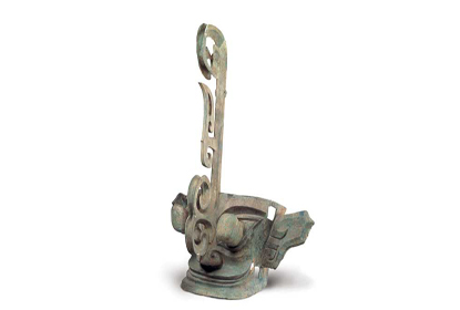 这件青铜面具神态奇异,特别是眼球极度夸张。面具两侧穿孔,可以佩戴。