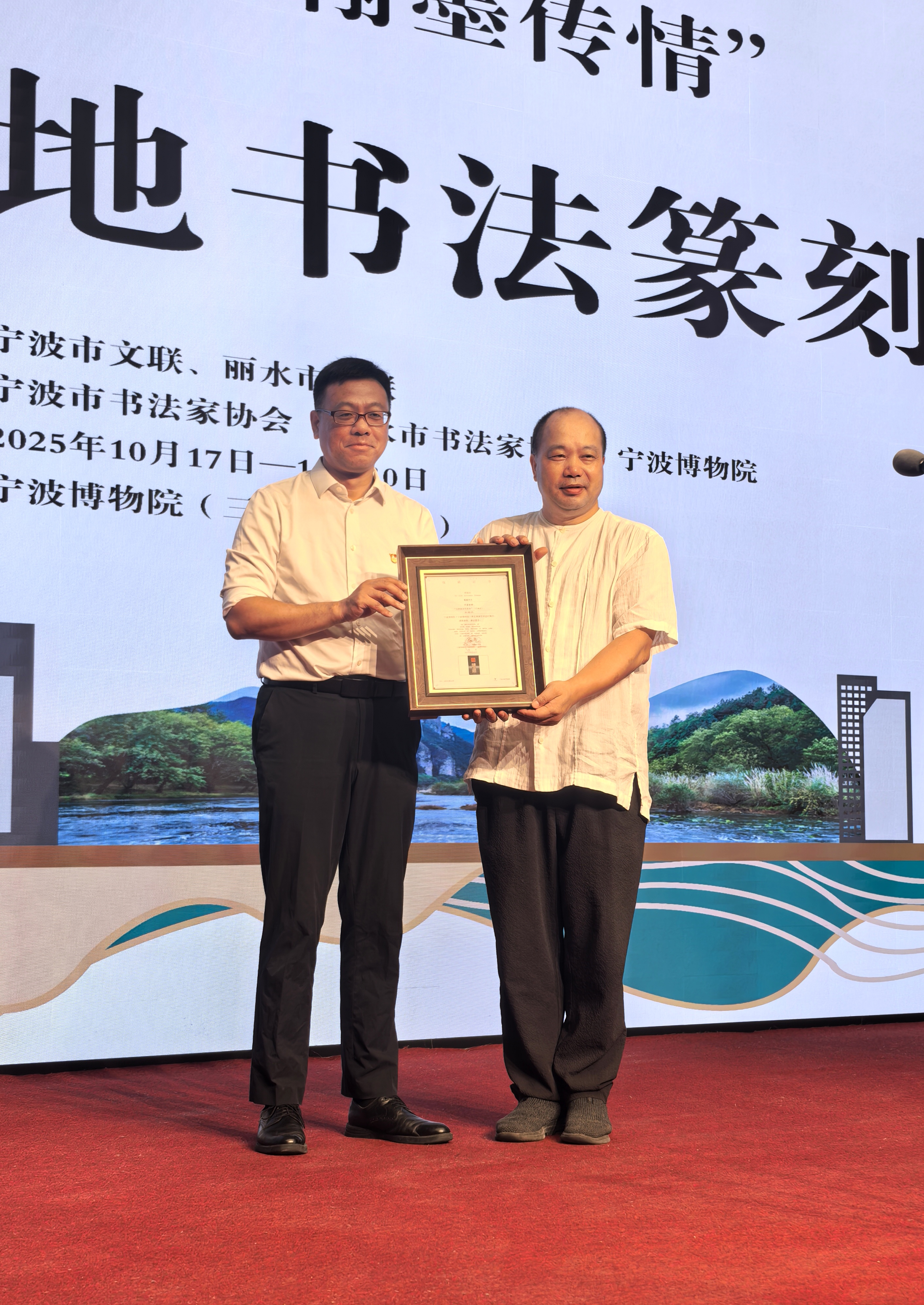 10月17日上午,由宁波市文联、丽水市文联共同主办,宁波市书协、丽水市书协、宁波博物院共同承办的“山海相拥·翰墨传情——宁波丽水两地书法篆刻联展”在宁波博物馆隆重开幕。本次展览两地各精选了书法篆刻作品50余件,共展出作品百余幅,作品诸体皆备,风格各异,代表了当下宁波、丽水两地的创作水平和创作实力。 宁波与丽水,作为浙东文化与浙西文化的重要承载地,两地始终在中华文明的奔涌长河中声气相通。每一件展品都彰显着宁波港城的开阔气象与丽水山城的灵秀意蕴,凝结着两地艺术家对艺术的赤诚与对双城情谊的期许。 本次联展立足浙江省“八八战略” 重要组成的山海协作工程,由宁波、丽水两市文联与书法家协会共同推动,既是两地深入学习贯彻党的二十大精神与习近平文化思想的具体实践,更是以书法篆刻为桥,深化山海协作、共筑文艺梦想的重要举措。 为让本次联展的艺术成果长久留存、惠及更多观众,在本次展览开幕式上,浙江省书协副主席、宁波市书法家协会主席蔡毅向宁波博物院捐赠本次联展的珍贵篆刻作品,宁波博物院院长张亮接受捐赠,并向蔡毅颁发收藏证书。 展讯 山海相拥 翰墨传情——宁波丽水两地书法篆刻联展 时间:2025年10月17日-10月30日 地点:宁波博物馆三楼南特展馆 |