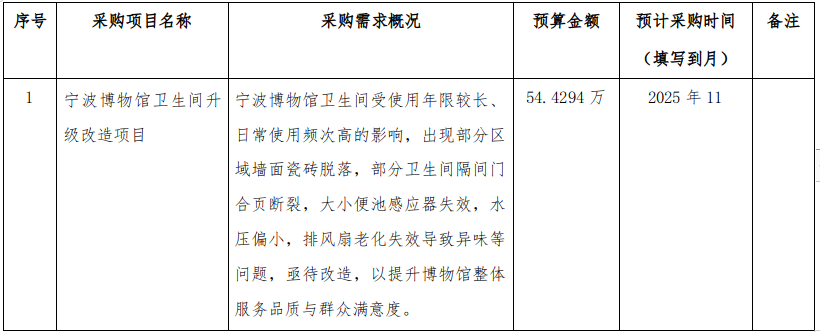 为便于供应商及时了解政府采购信息,根据《财政部关于开展政府采购意向公开工作的通知》(财库〔2020〕10号)等有关规定,现将宁波博物院2025年10月采购意向公开 如下: